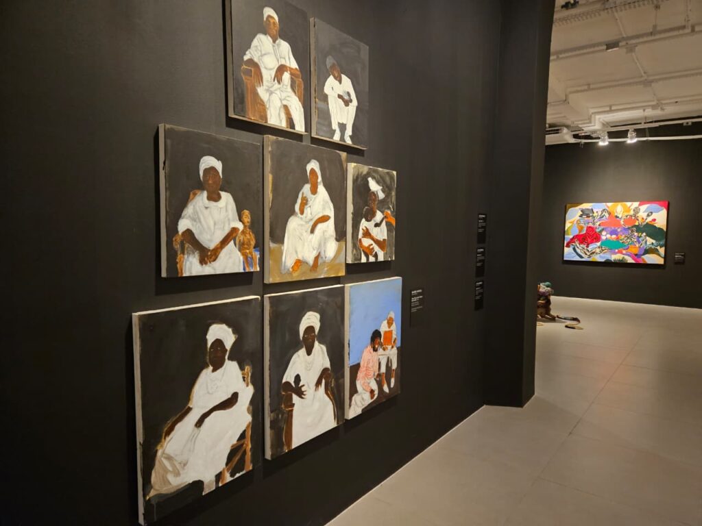 Durante visita guiada nesta quinta-feira (25), a curadora abordou temas como diáspora, identidade, lazer e fé, tópicos inerentes ao debate da negritude. “O tema da diáspora começou a ser incorporado no discurso de alguns pan-africanistas. [Édouard] Glissant, quando vai pensar sobre o conceito de negritude, percebe que o mundo ficou muito chocado com a Segunda Guerra porque as pessoas estavam sendo mandadas para campos de concentração e isso foi considerado crime contra a humanidade”.