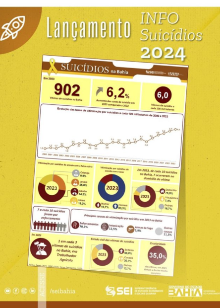 Compartilhar 24 set 2024 Saúde por Jadson Luigi Setembro Amarelo: 83,3% das vítimas de suicídio na Bahia eram homens, revela SEI