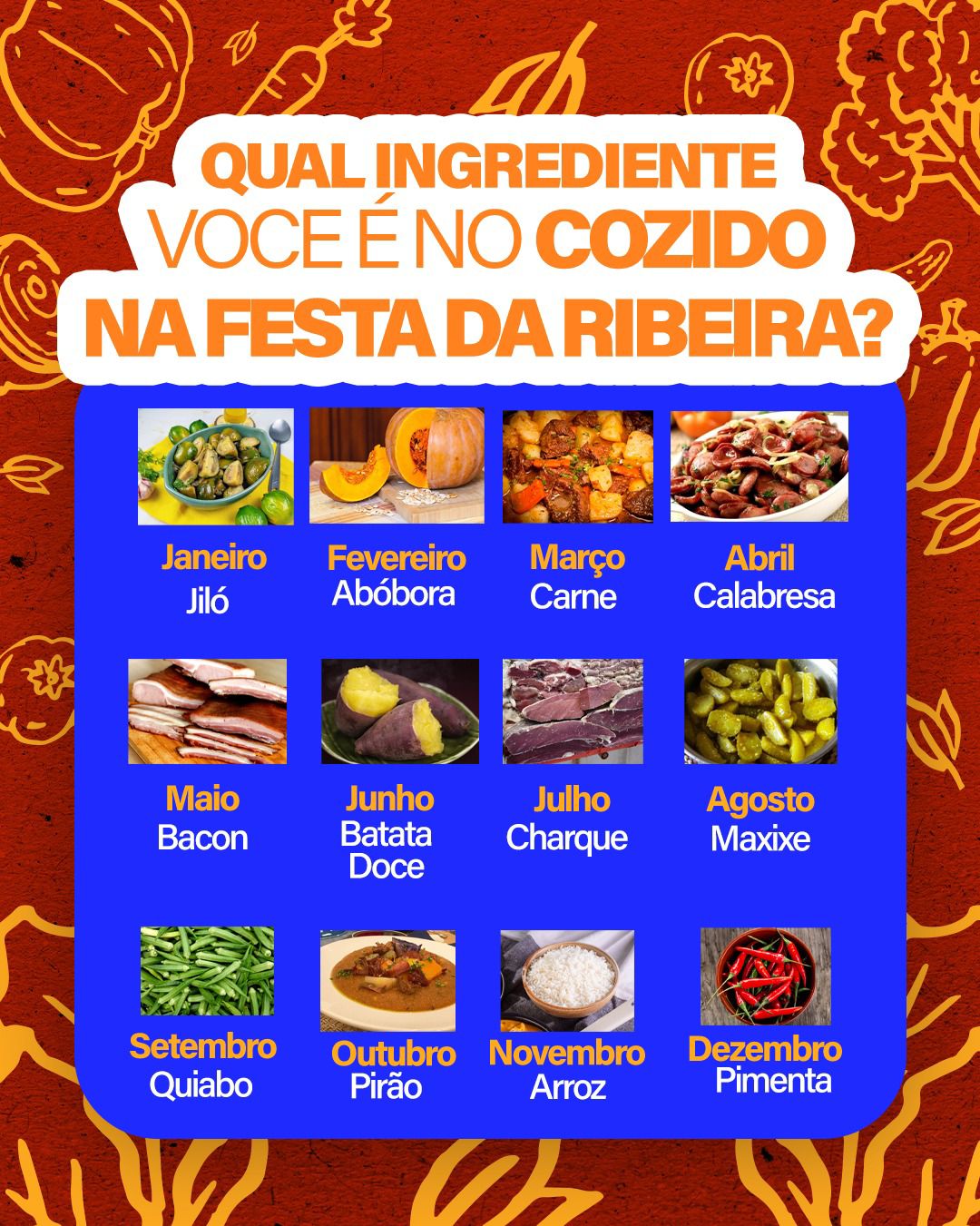 É fácil: associe o seu mês de nascimento com o seu signo e descubra qual “nome de guerra” você tem entre ingredientes do cozido que é a comida-protagonista da comemoração na Ribeira.
