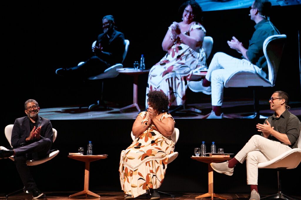 E a expectativa foi cumprida: no dia 9, a Mesa 2 reuniu os consagrados escritores Itamar Vieira Junior e Jeferson Tenório, que encantaram o público com reflexões sobre como fatores sociais moldam nossas histórias coletivas e individuais.