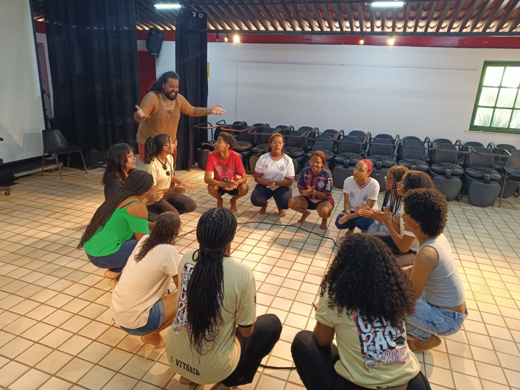 Na sexta-feira, 12 de setembro (10h), a cena se abre para Poéticas em Trânsito: escrever, sentir, dizer, residência de escrita criativa e performance poética ministrada por NegaFyah no Colégio Estadual 2 de Julho, onde jovens transformam palavras em gestos cênicos e coletivos. Logo após, os alunos do Colégio Estadual Rotary, orientados pelo bailarino Thiago Cohen na residência “Equilibrista ou Nada é Definitivo”, apresentam Entre Ruas e Marés, trabalho que articula memórias corporais, fluxos urbanos e afetos, refletindo sobre adolescência, impermanência e coletividade.