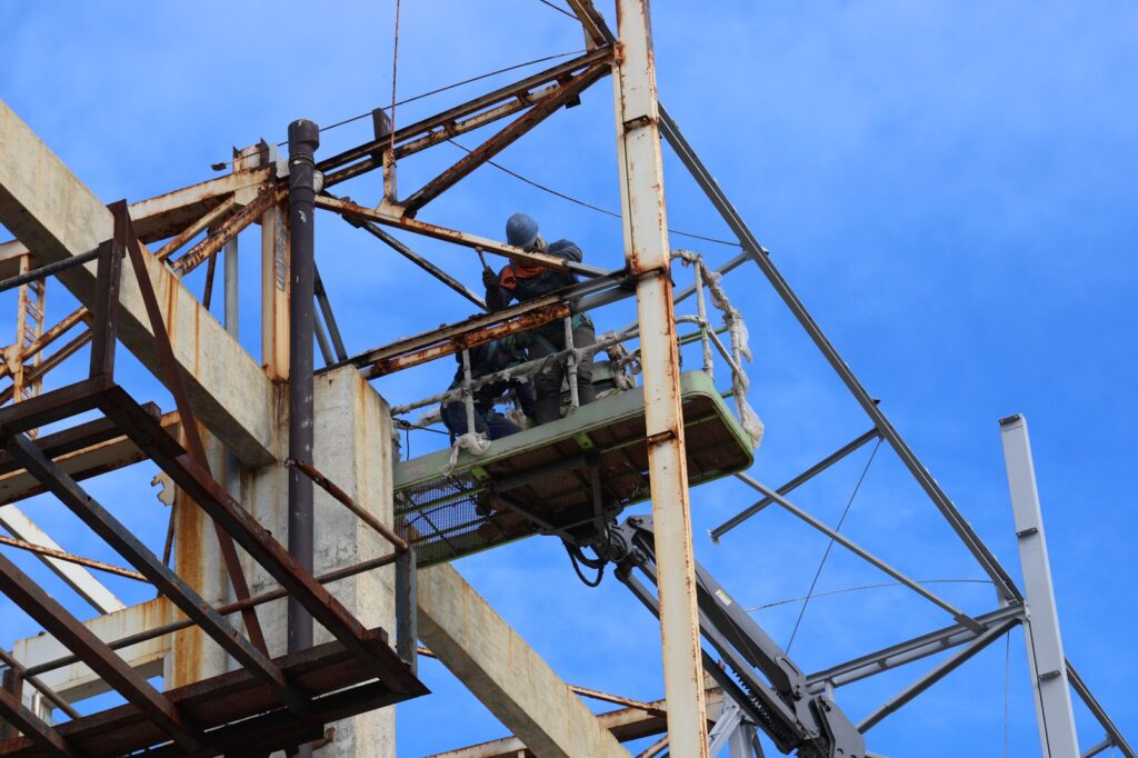 A fase atual dos serviços, executados pela Construtora Sena Júnior Eireli, concentra-se em resolver os danos causados pela maresia. “Após a conclusão do serviço de limpeza geral da área e da remoção de equipamentos danificados, estamos realizando a substituição das peças oxidadas da estrutura do prédio destinado ao ginásio”, explicou o engenheiro civil Thiago Senna, responsável técnico pela obra.